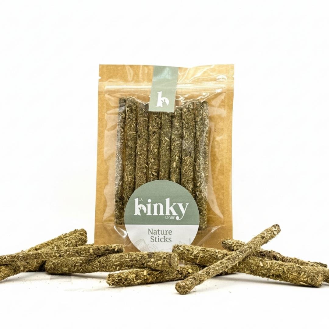 Los Nature Sticks de hierbas selectas, están compuestos con una mezcla selecta de hierbas muy ricas en fibra y nutrientes esenciales. La base de estos sticks son palitos de sauce, recubiertos de cachitos de hojas de diente de león y equinácea, entre otros. Son ideales para complementar la dieta de tu pequeño con un snack saludable que cuida sus dientes, estimula su curiosidad y favorece su bienestar digestivo.